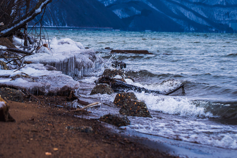 Small Spray Ice Formed on the Shore of Lake Inawashiro