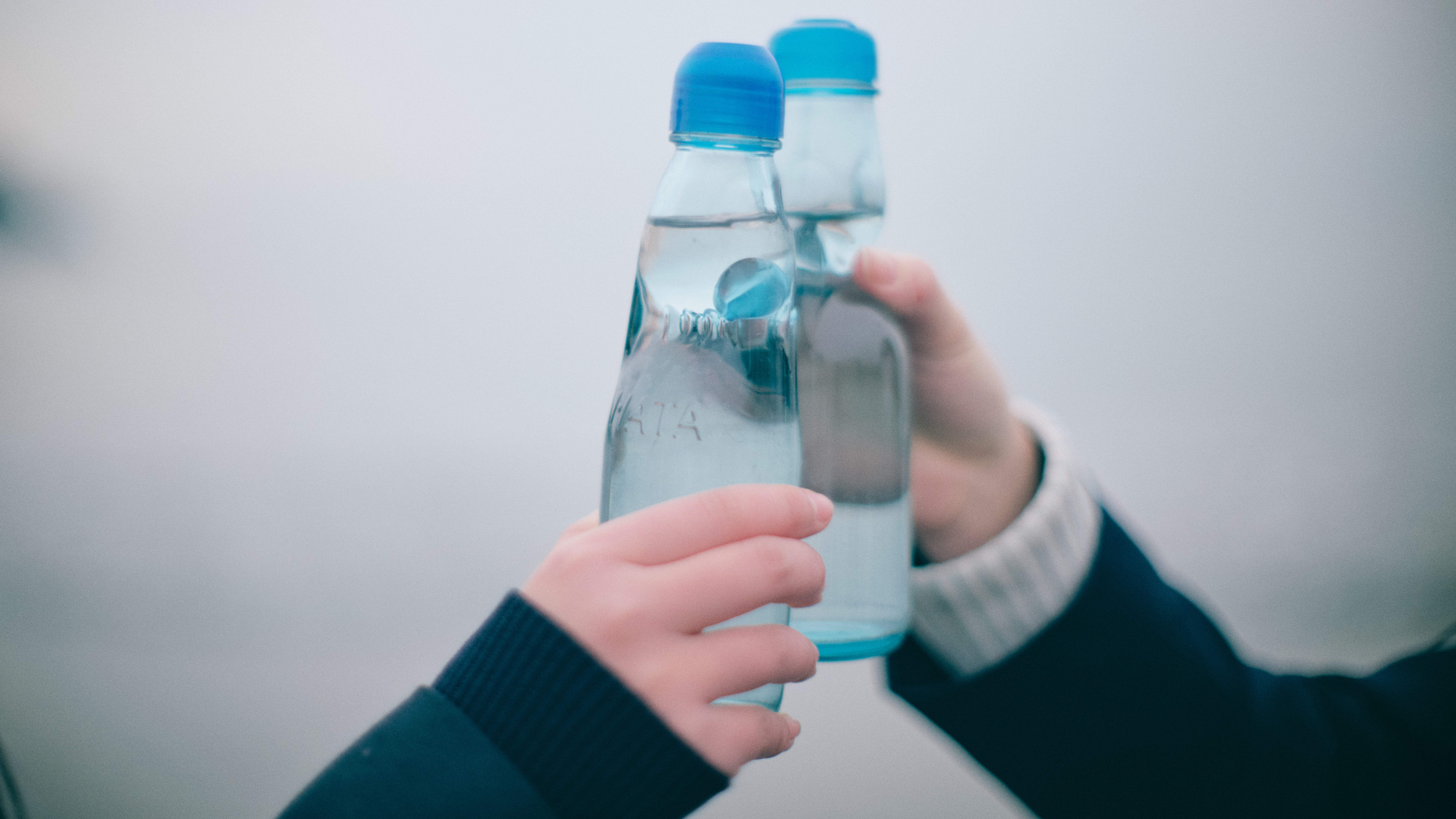 ラムネ瓶を重ねて乾杯する女子高生の写真素材です。複数の瓶を重ね合わせ、両手で握る手が写っており、ラムネの瓶を通して夏休みの爽やかで青々とした思い出を表現できます。学生時代のイベントやシーン表現、青春関連のWebサイトやブログ、SNS投稿などにおすすめです。