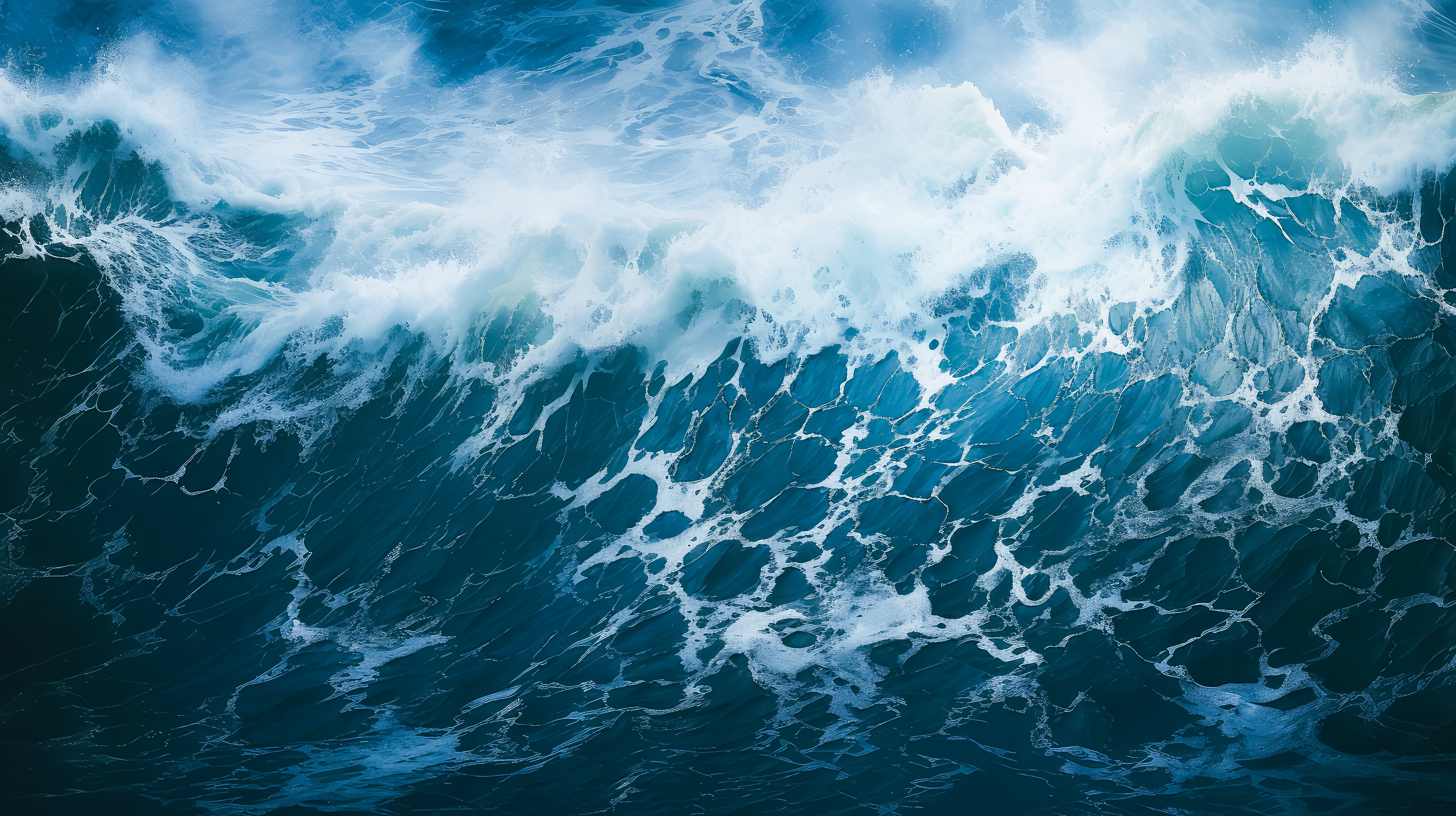 AIで生成した嵐の中で荒れ狂う海の画像素材です。深いターコイズブルーの波が激しく立ち上がり、白い波飛沫が力強く舞い上がる迫力ある自然現象を表現。大しけの波動を臨場的に再現し、自然災害やテーマ背景として活用できます。