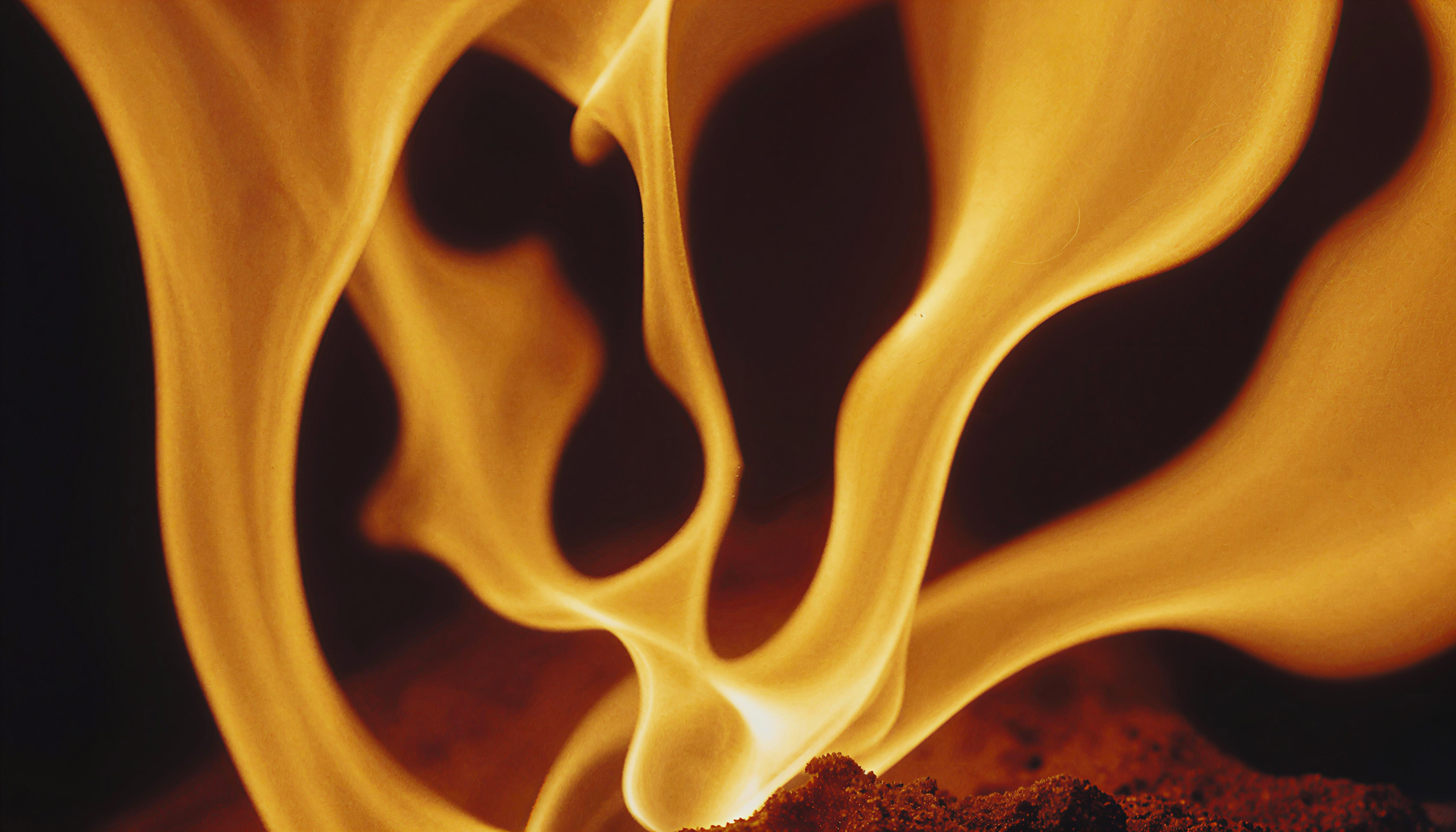 黄色と赤色の炎が舞う、立ち上る火炎の流れと燃焼の情景のAI画像素材(フリー)