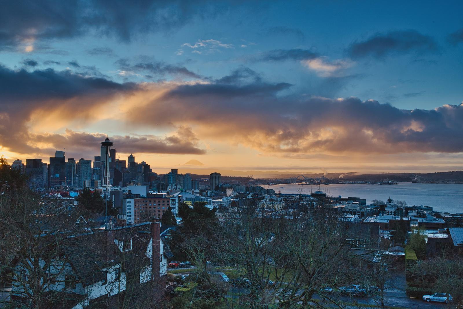 Beautiful Seattle Cityscape Bathed in Sunset Glow