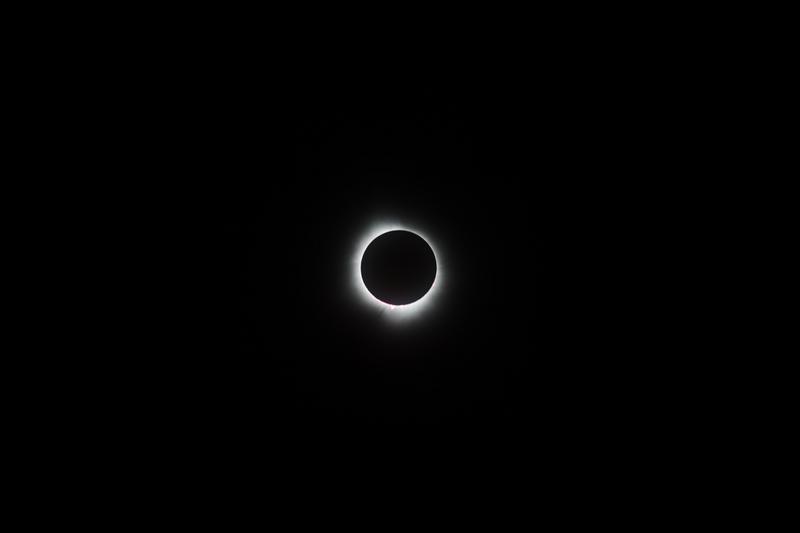 皆既日食の太陽コロナの写真素材です。月が太陽を完全に覆った瞬間、黒い月の周囲に白く輝く太陽のコロナが放射状に放出される壮大な景観が映し出されています。天文学や宇宙関連の教材、科学ドキュメンタリー、天体現象の解説コンテンツなどにおすすめです。