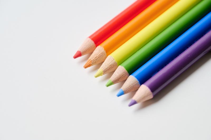 Rainbow-colored pencils on a white background