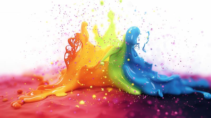塗料が混ざり合う躍動的な色彩表現と飛沫効果のAI画像素材(フリー)