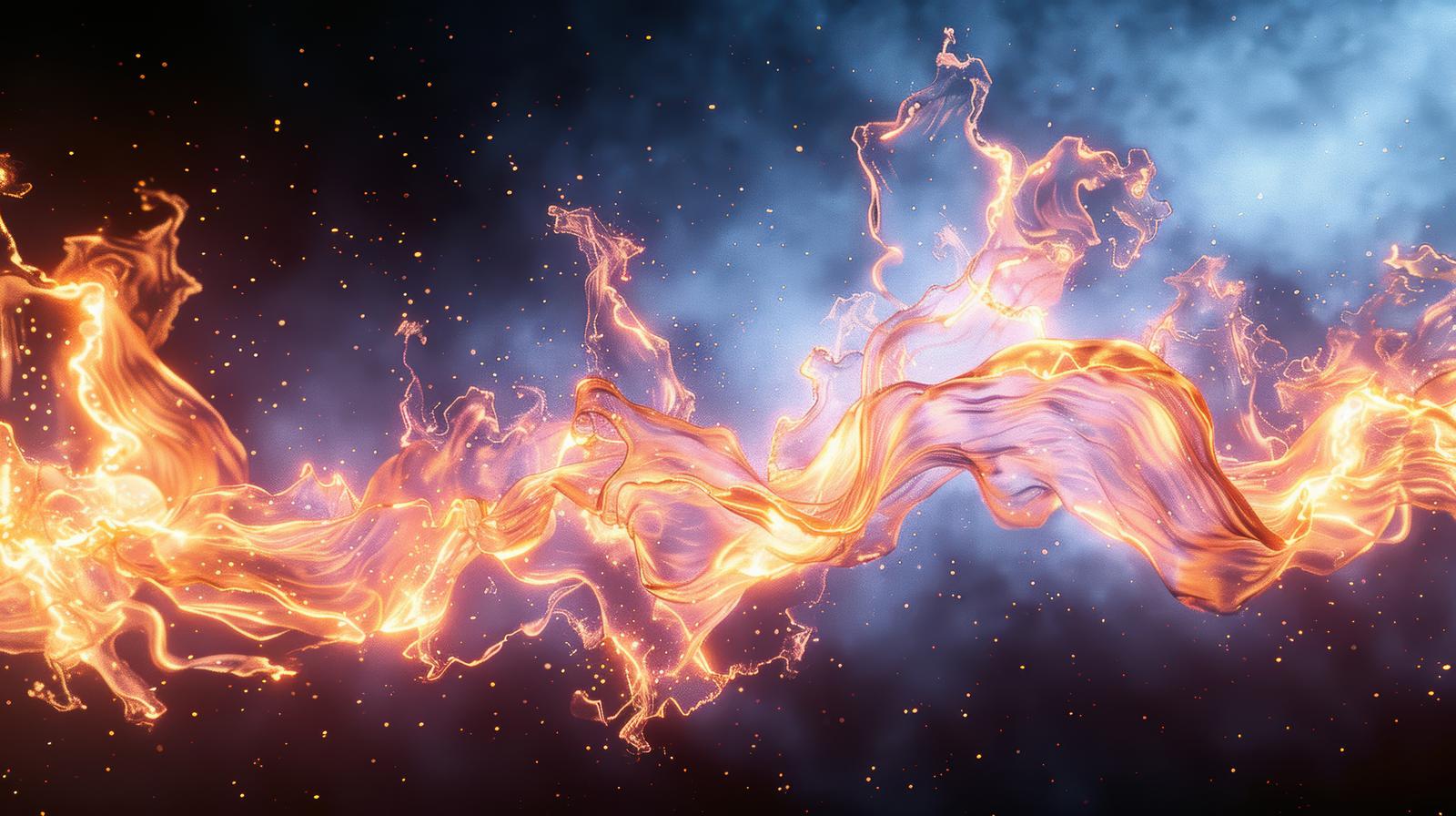 エネルギーの揺らめきと炎のリボン|ダイナミックな火炎エフェクトのAI画像素材(フリー)