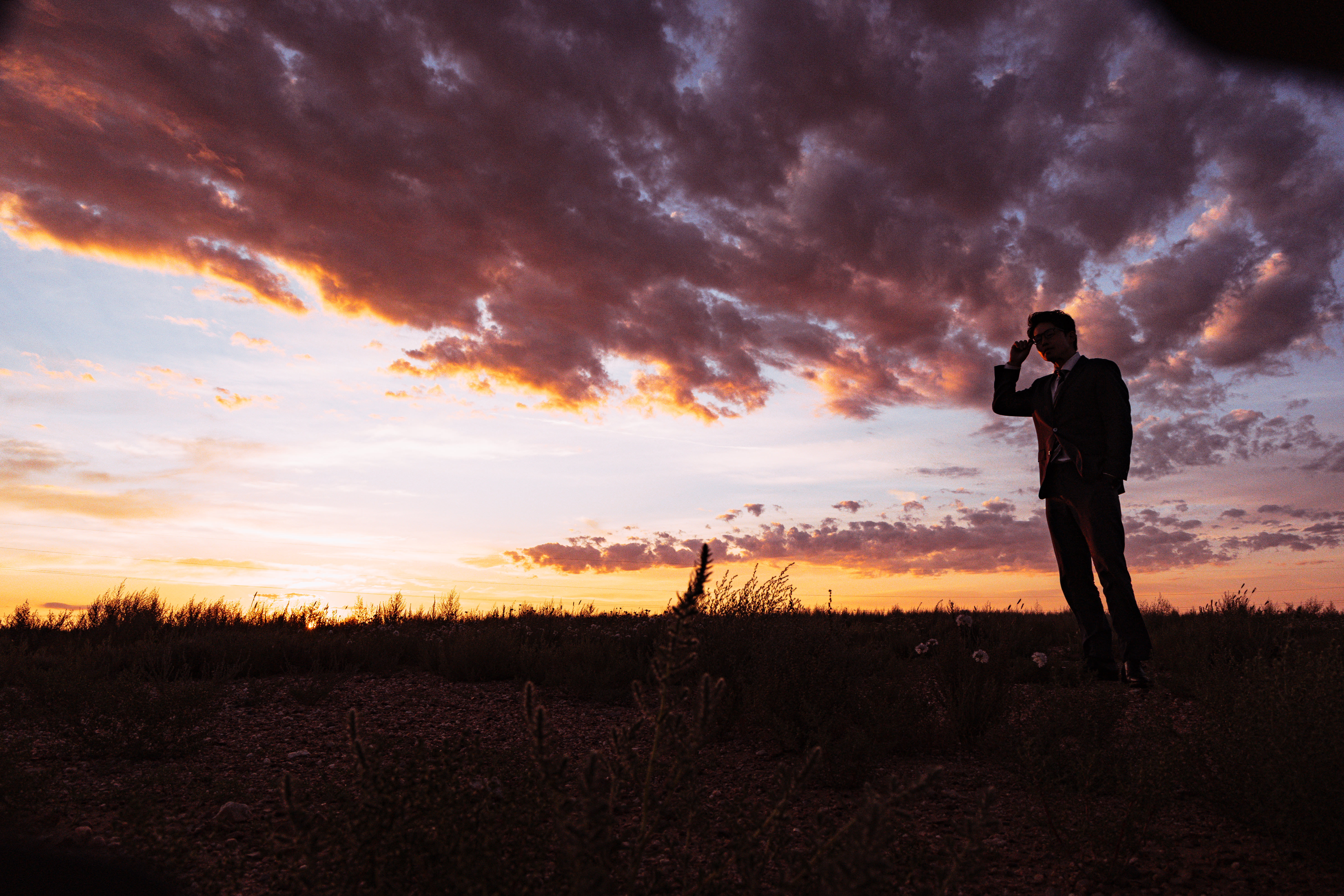 Businessman's Silhouette Against the Mongolian Landscape at Sunset