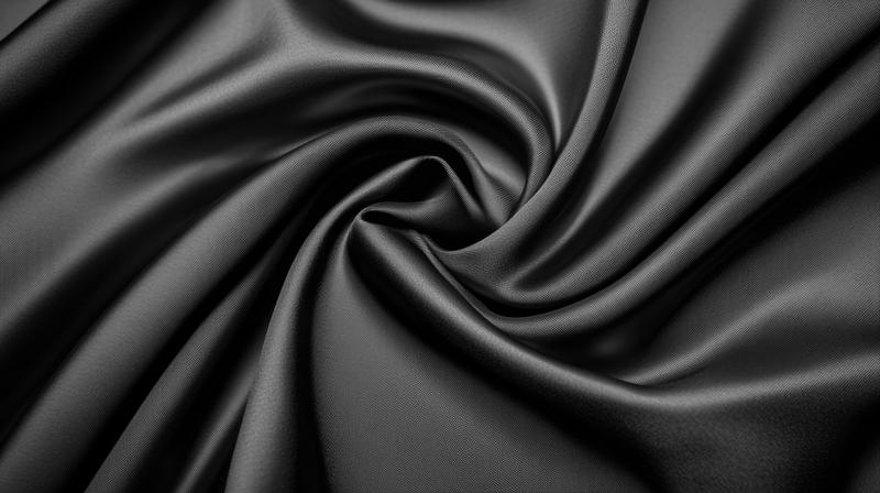 黒いサテン生地の流れるドレープとうねりのテクスチャー
