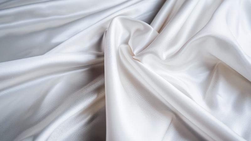 白いサテン生地のドレープのクローズアップ