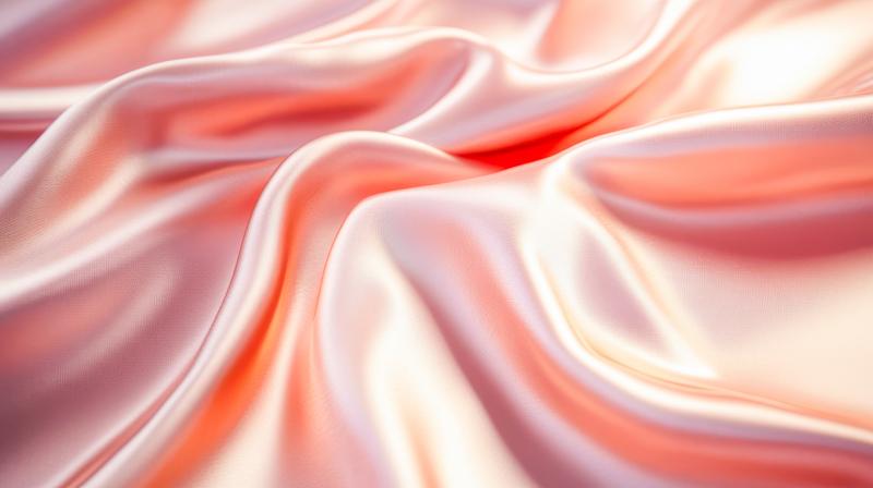 ピンクからオレンジへグラデーションする波状のしわが入った光沢のある布地