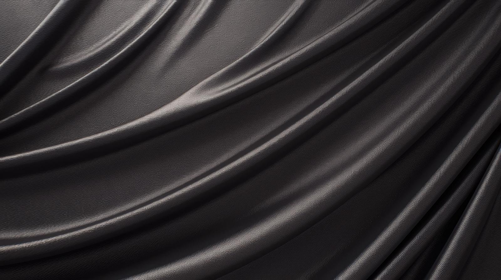 黒のサテン生地が流れるように波打つドレープのAI画像素材(フリー)