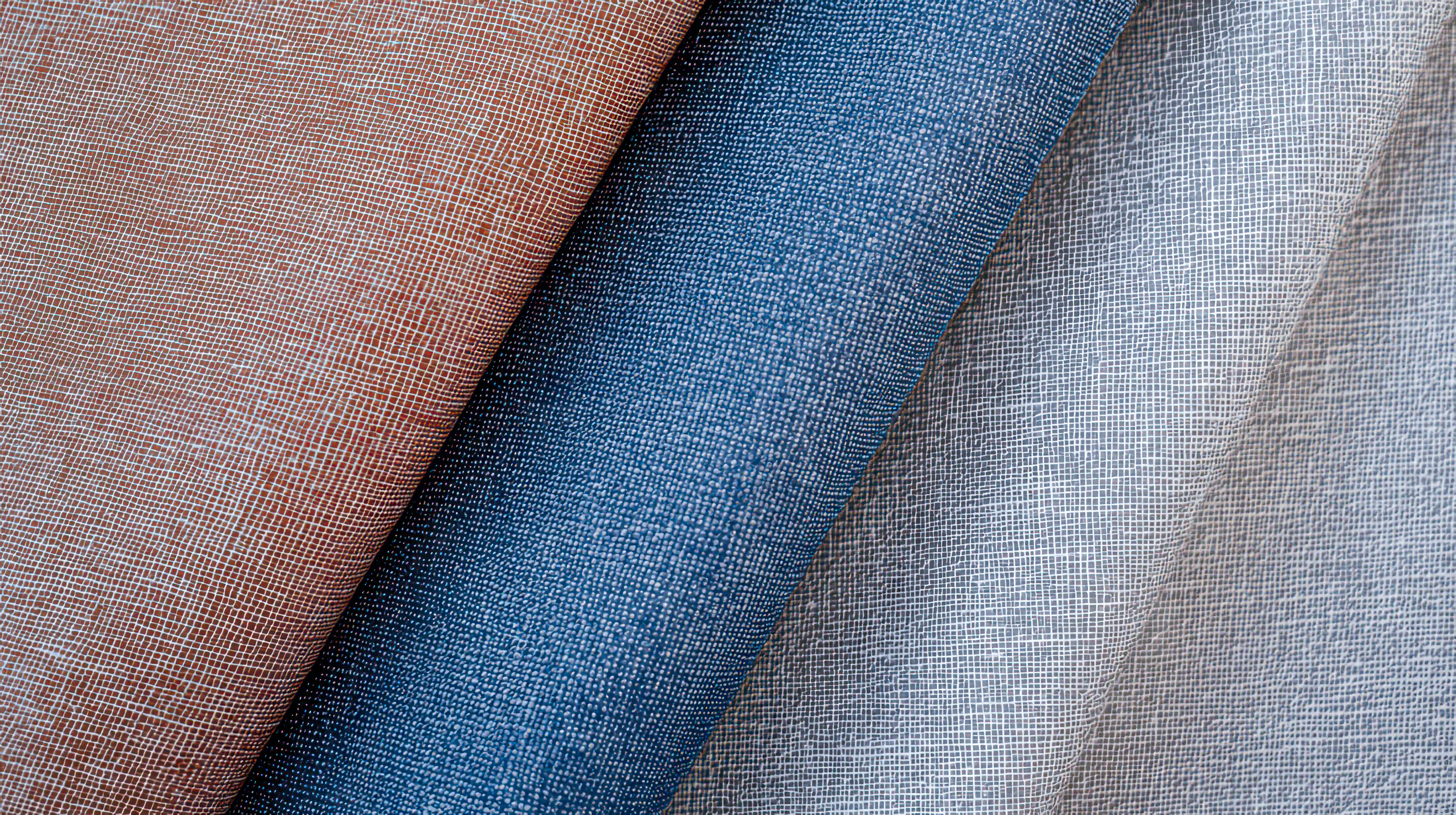 リネン調の布地3色がロール状に重なった画像