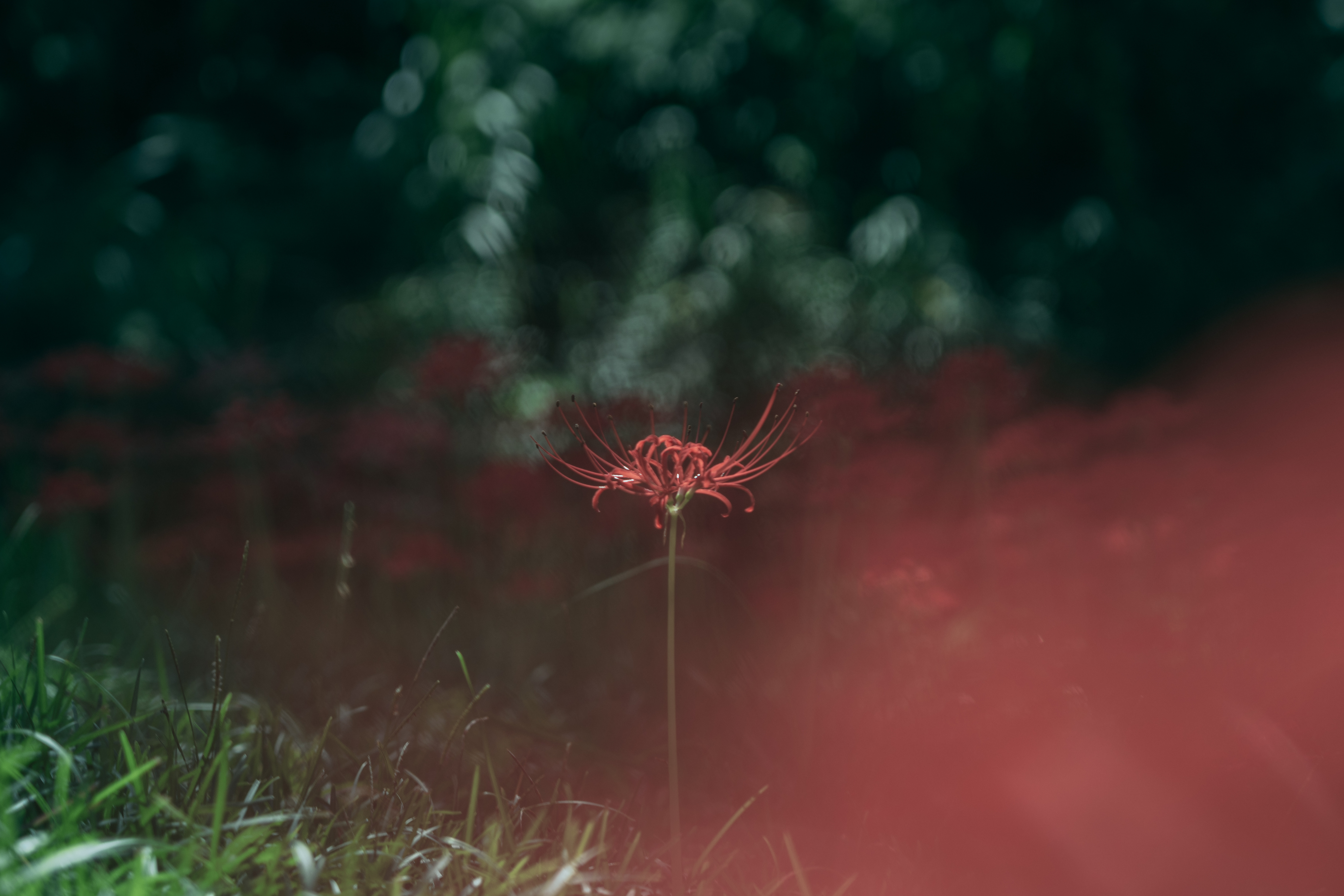 A Single Red Spider Lily Blooming in Silence