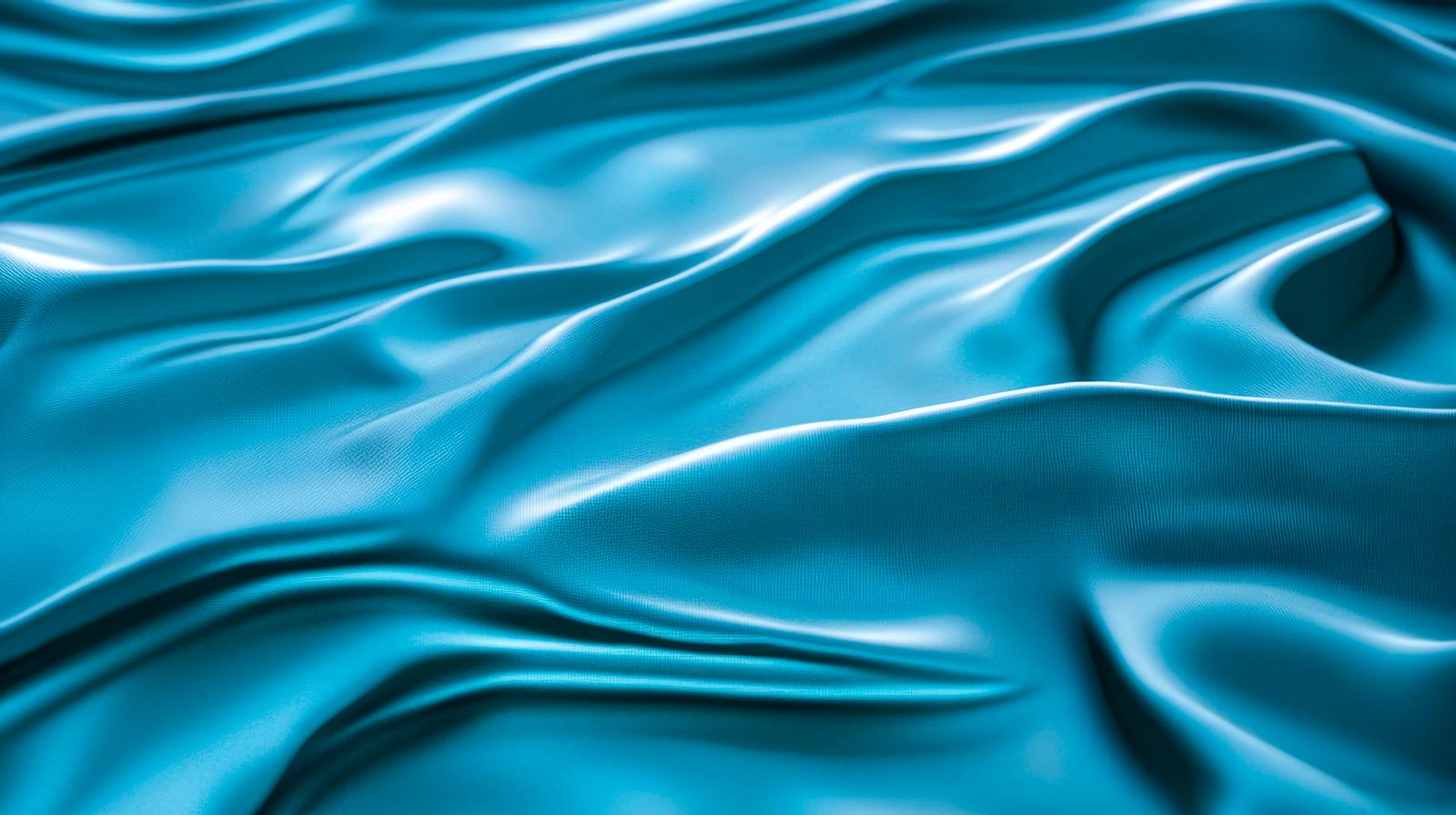 青い布のしわが波打つサテン生地のクローズアップテクスチャーのAI画像素材(フリー)