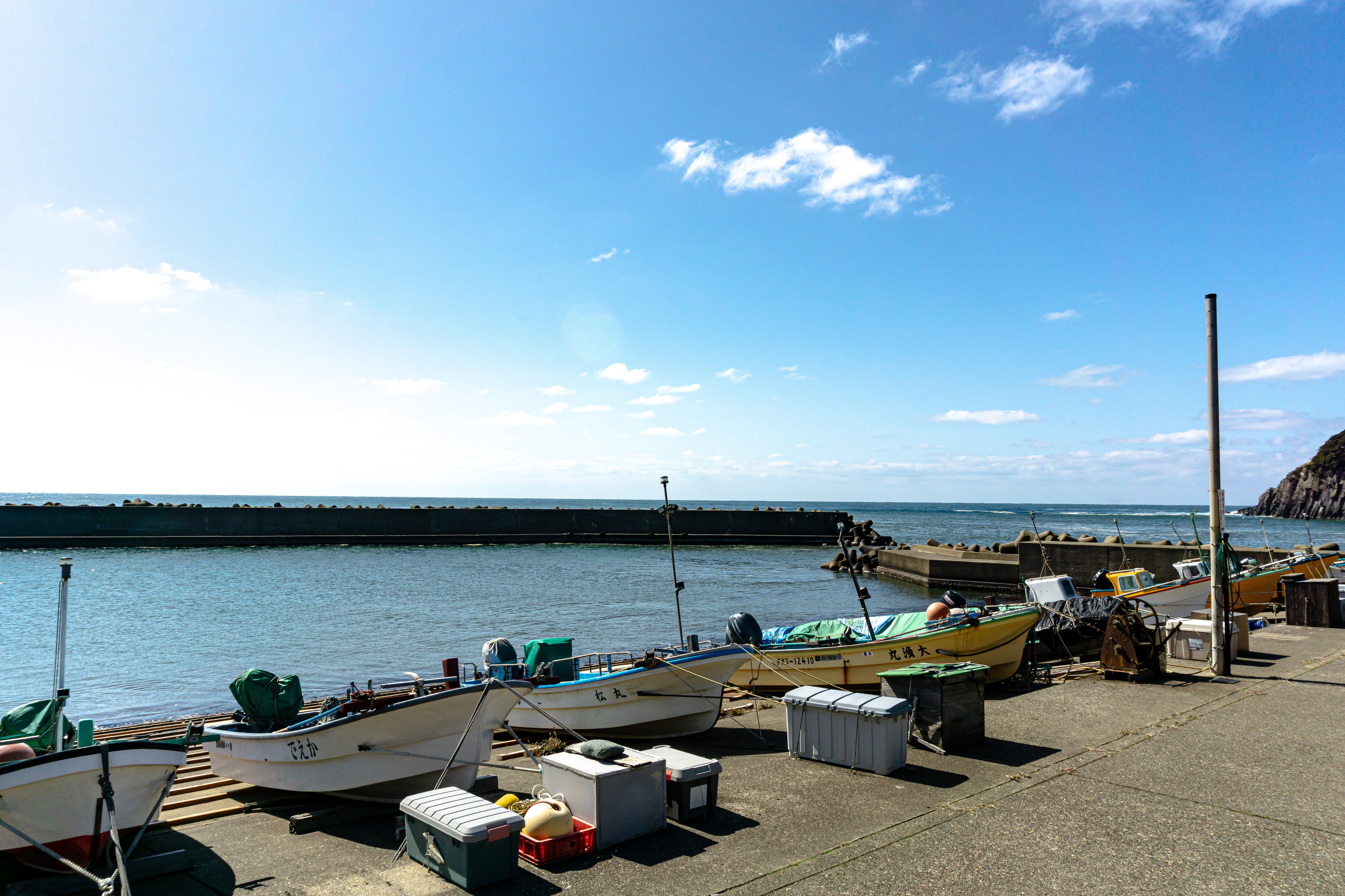 Ajima Fishing Port with Fishing Boats Lined Up