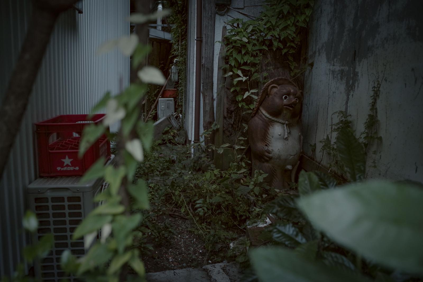 Forgotten Tanuki Figurine in an Overgrown Back Alley