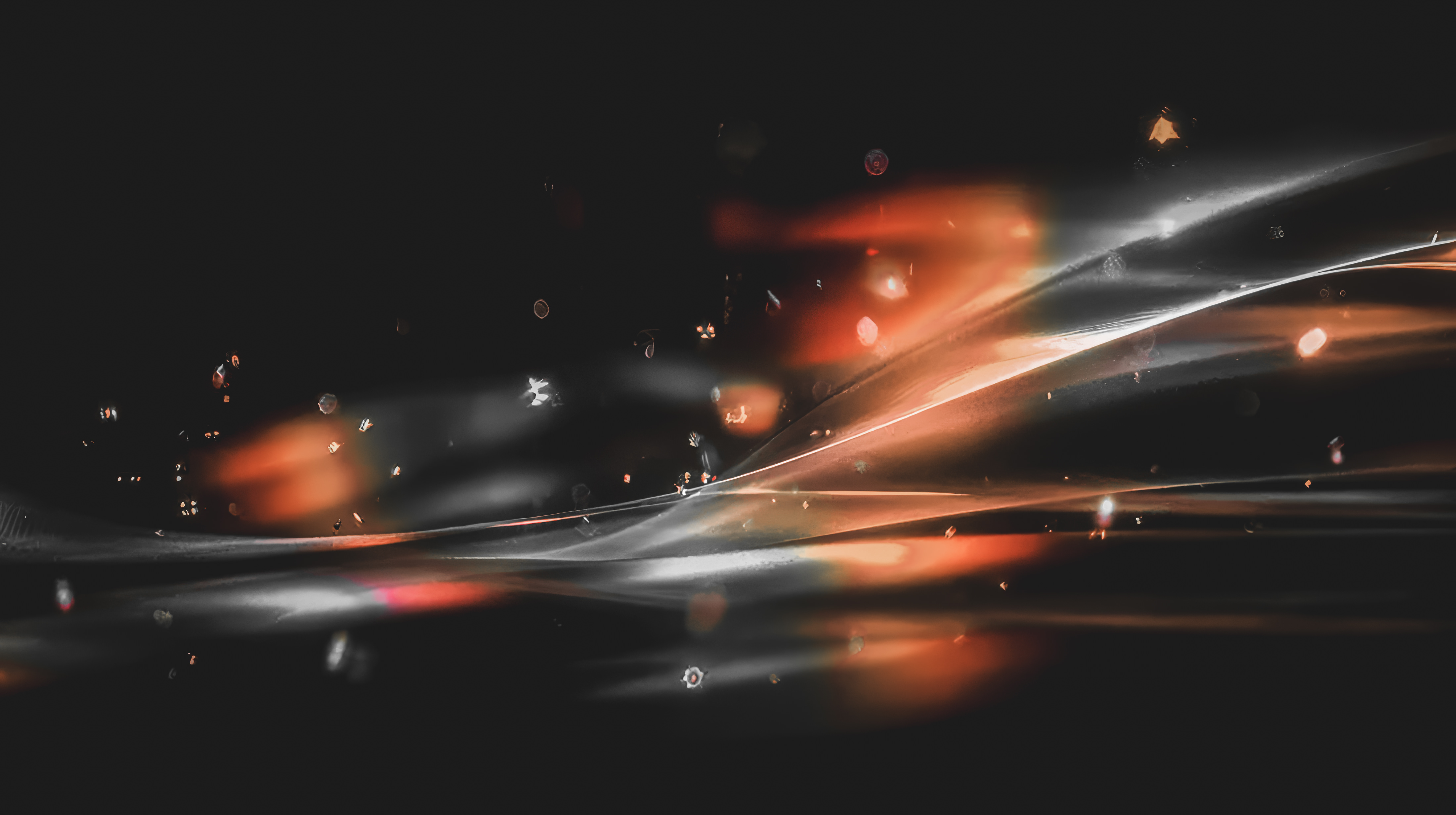 オレンジと白の光線が交差し流れる近未来的な光の軌跡