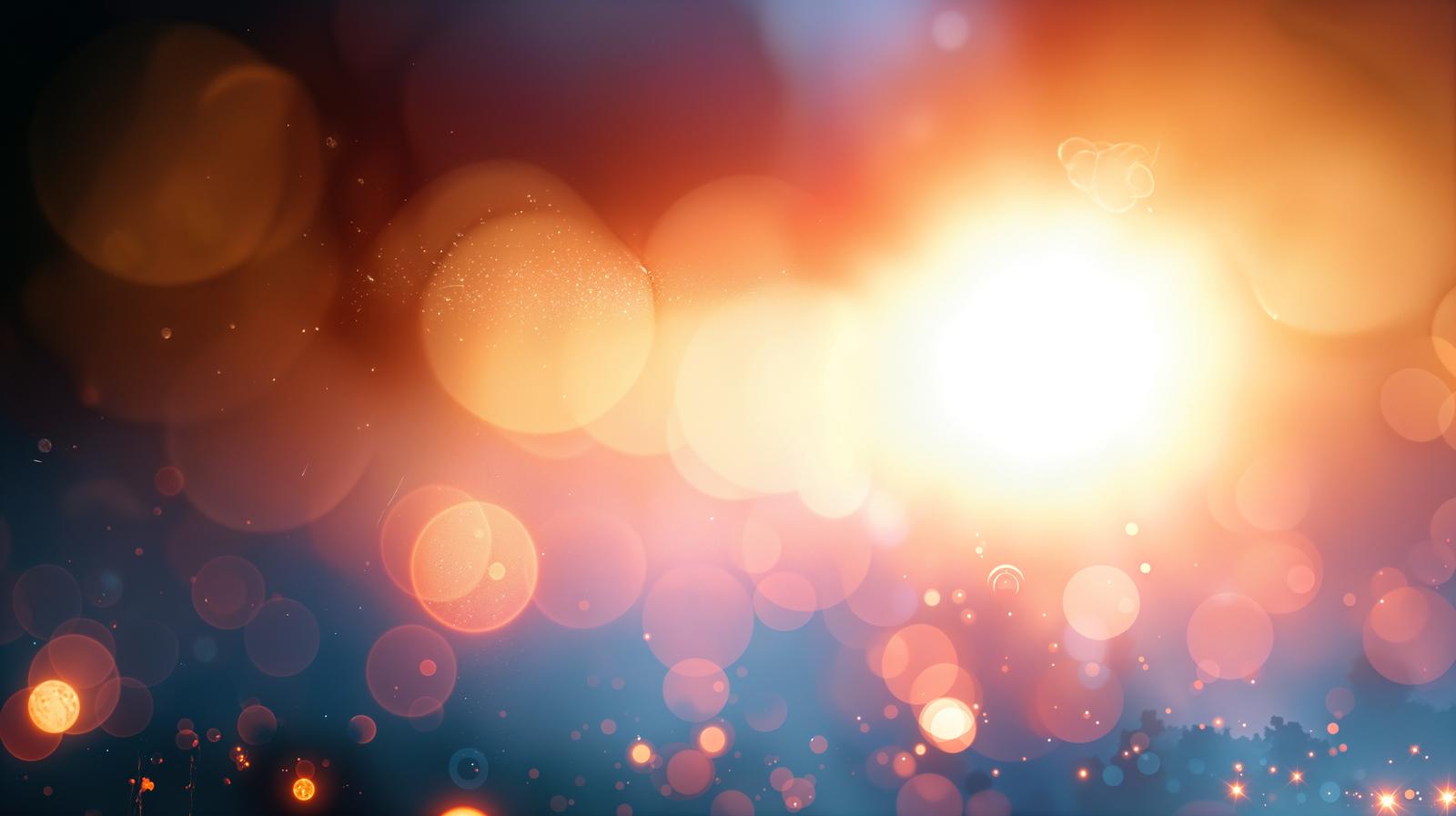 AIで生成した玉ボケとキラキラ光のボケ味背景の画像素材です。大小の丸いボケ光が画面全体に広がり、中央右寄りには強い光源が浮かぶ。SNSのヘッダーやWebデザインの背景、ポスターの下地におすすめです。