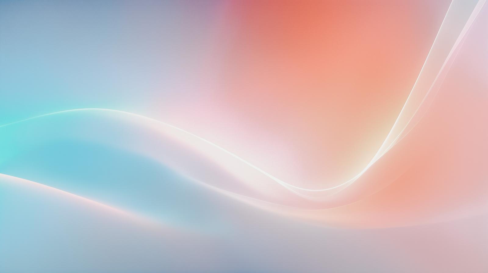 AIで生成したパステルピンクとブルーのグラデーションが流れるような波形の画像素材です。なめらかな曲線が重なり合い、柔らかな光の表現を実現しています。抽象的なデザインが特徴的で、プレゼンテーションの背景やWebサイトのヘッダー画像に使えます。