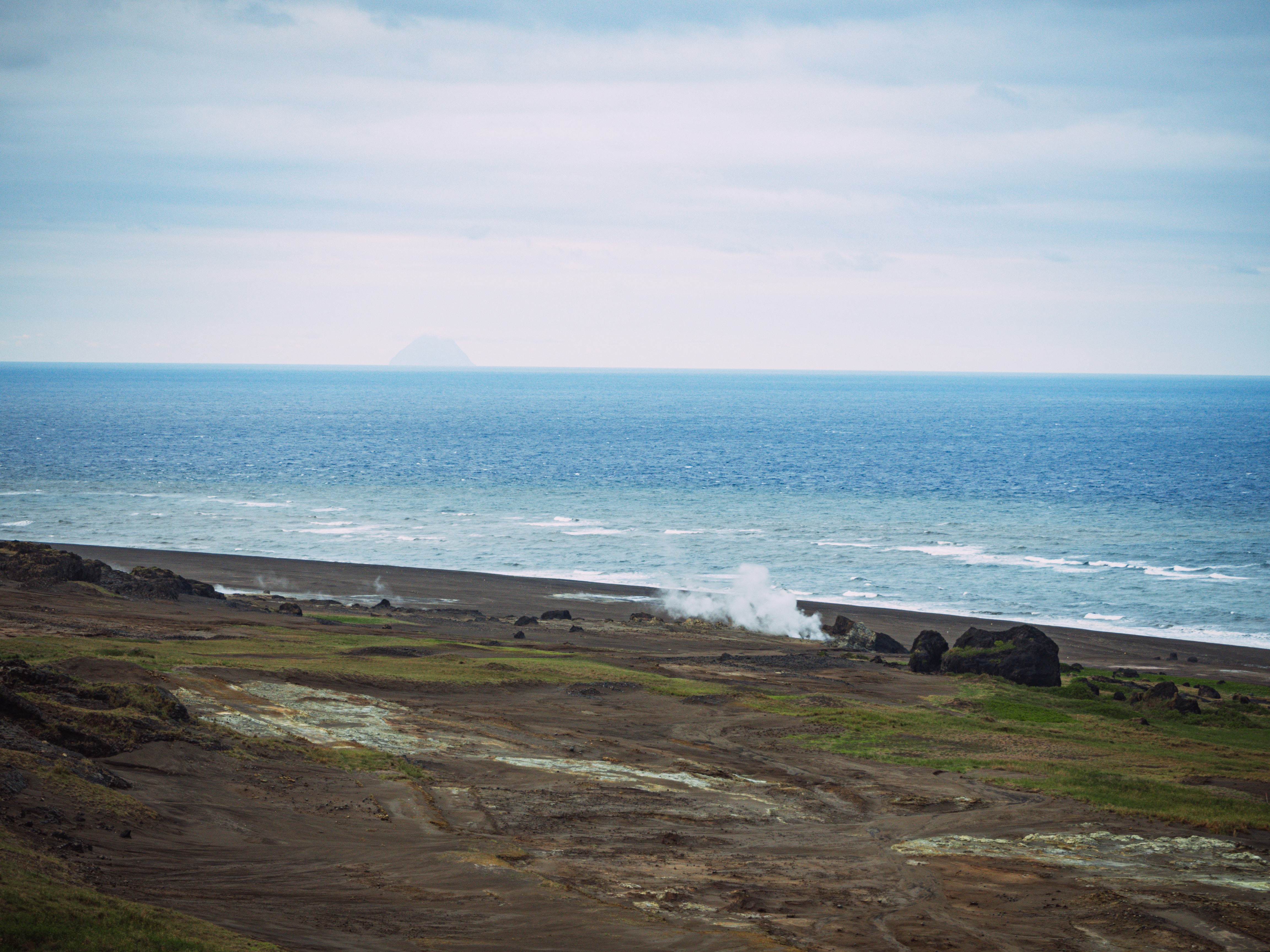Steam Rising from the Coastline and the Shadow of Distant Kita-Ioto Island