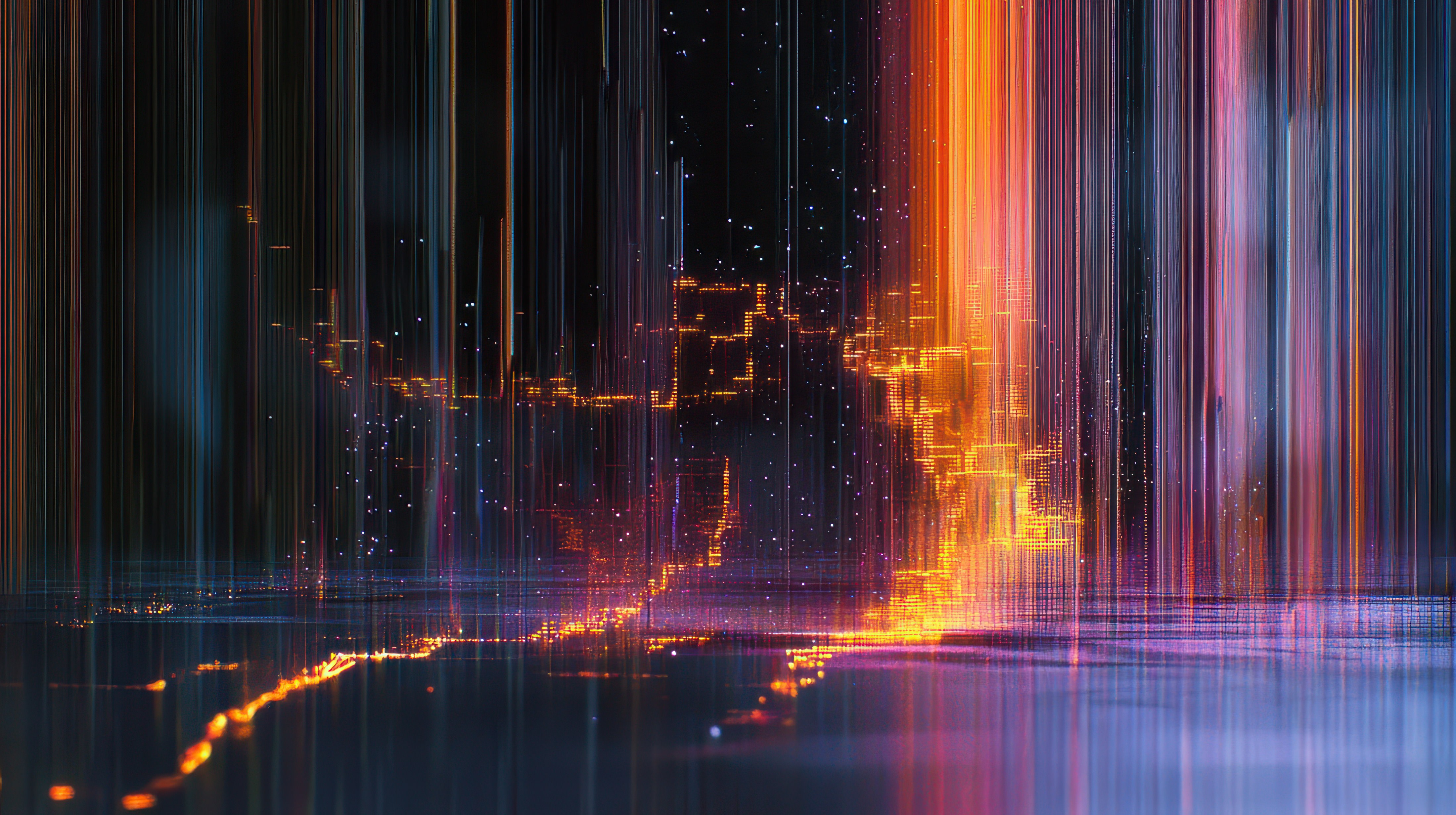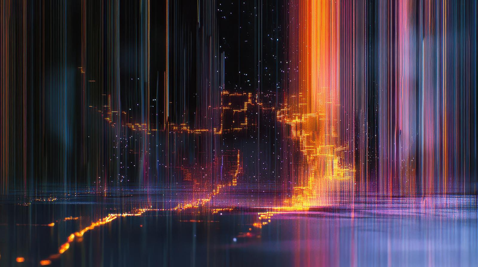 縦線ノイズと色収差が織りなすサイバー空間のデジタルアートのAI画像素材(フリー)