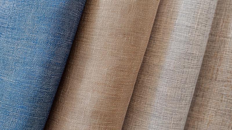 ベージュと青とオレンジの織り布を縦に並べた繊維サンプルのAI画像素材(フリー)