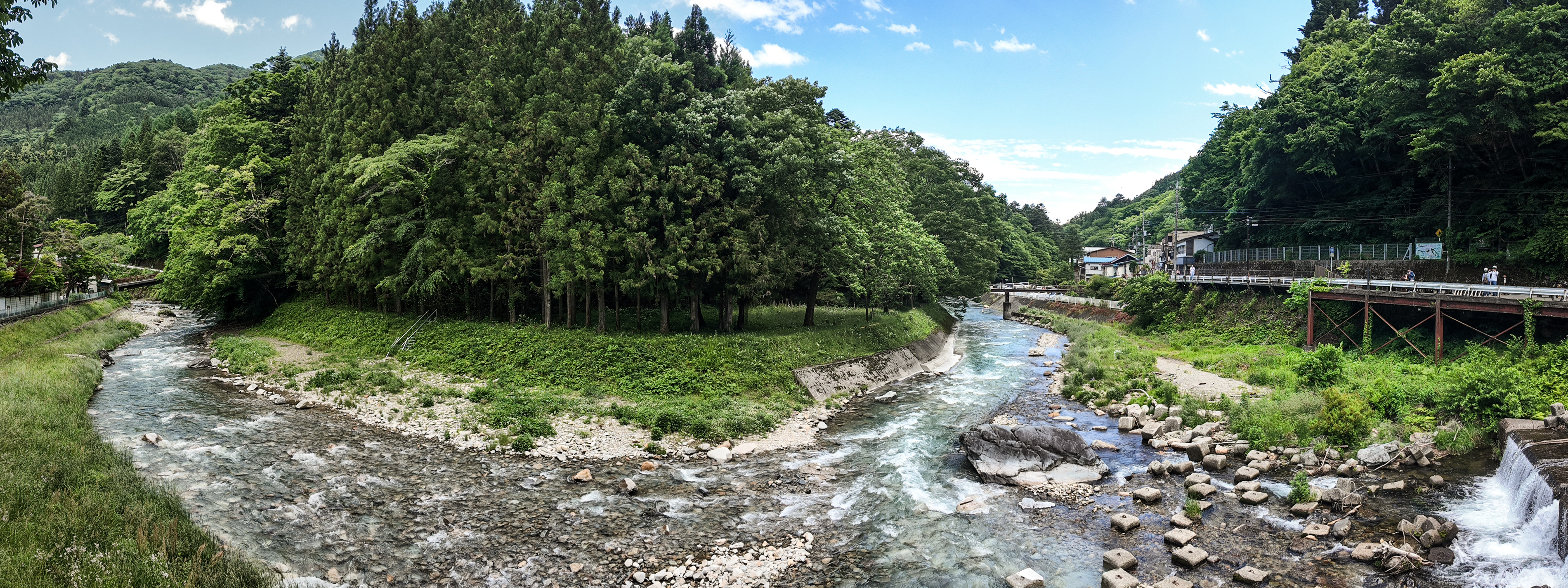 Panorama of Clear Stream Flowing Through Shima Onsen (Shima Onsenkyo)