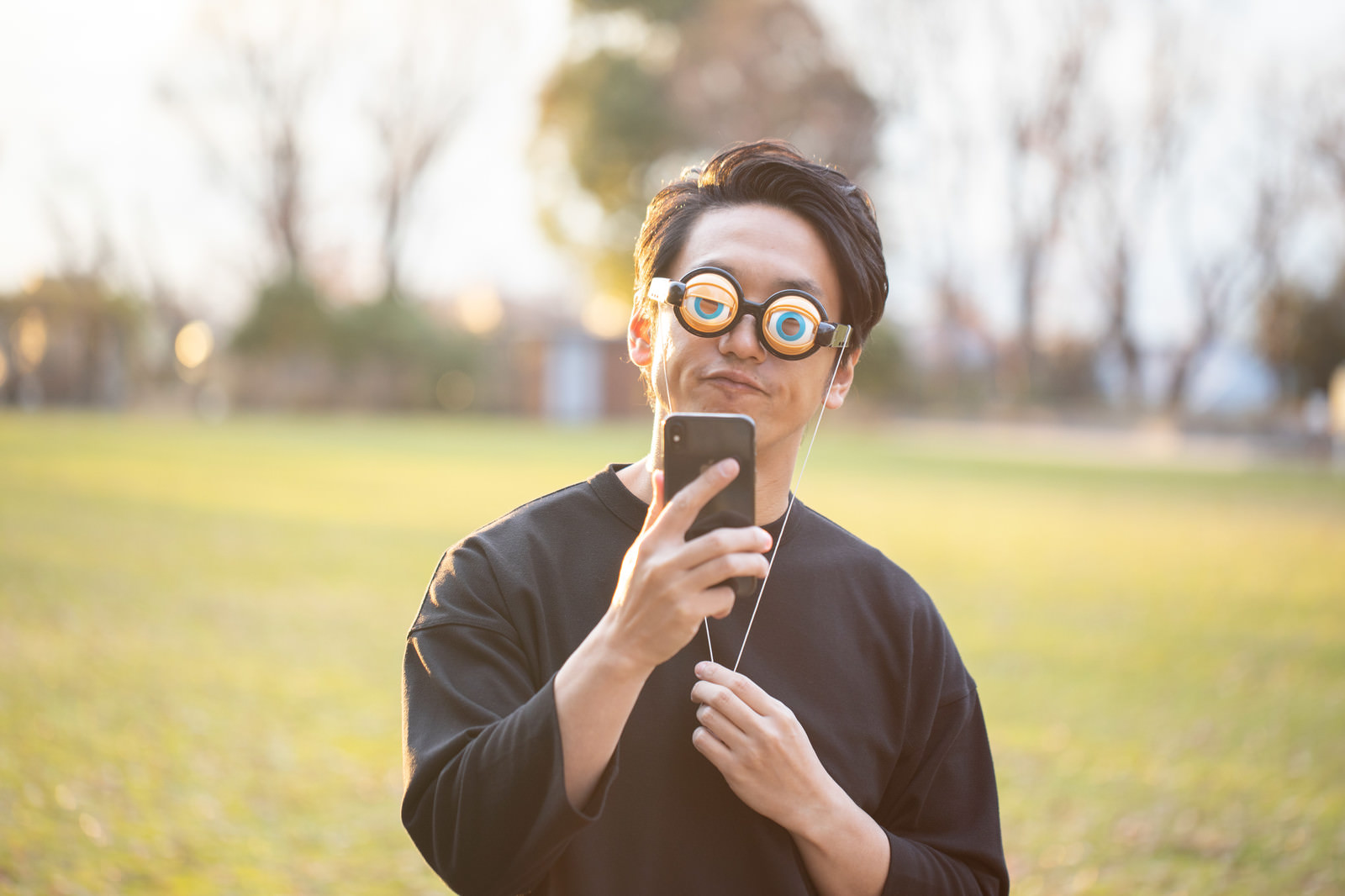 さて、自称日本一こと誇張したフリー素材モデルの大川竜弥さんに狂気メガネをかけてもらい撮影してきました。ちなみにこのメガネは、アマゾンで絶賛販売中です。