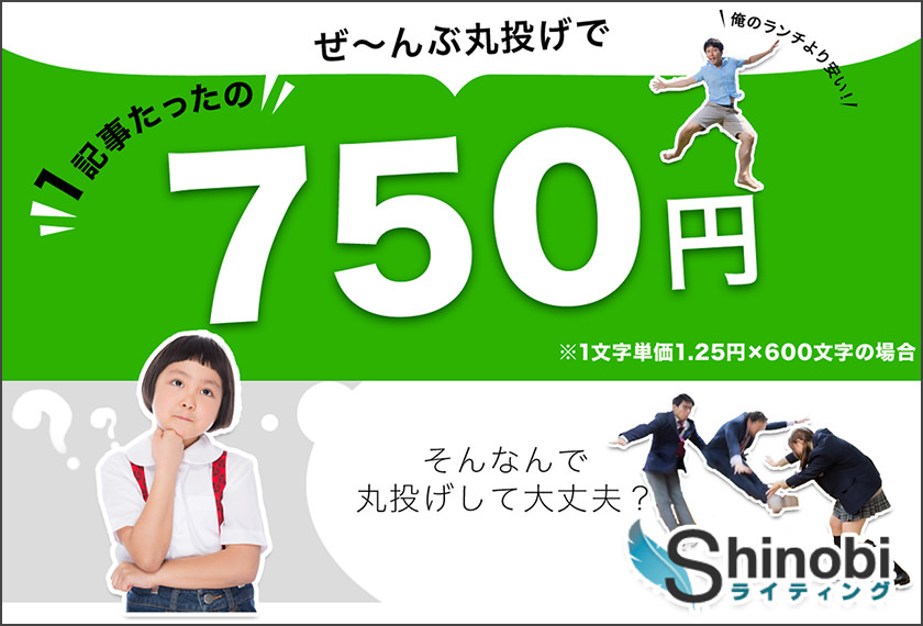 低価格で高品質のライティングが可能!アフィリエイターやweb制作に関わる方は、ぱくたそのフリー素材とあわせてShinobiライティングで記事を外注してみませんか?