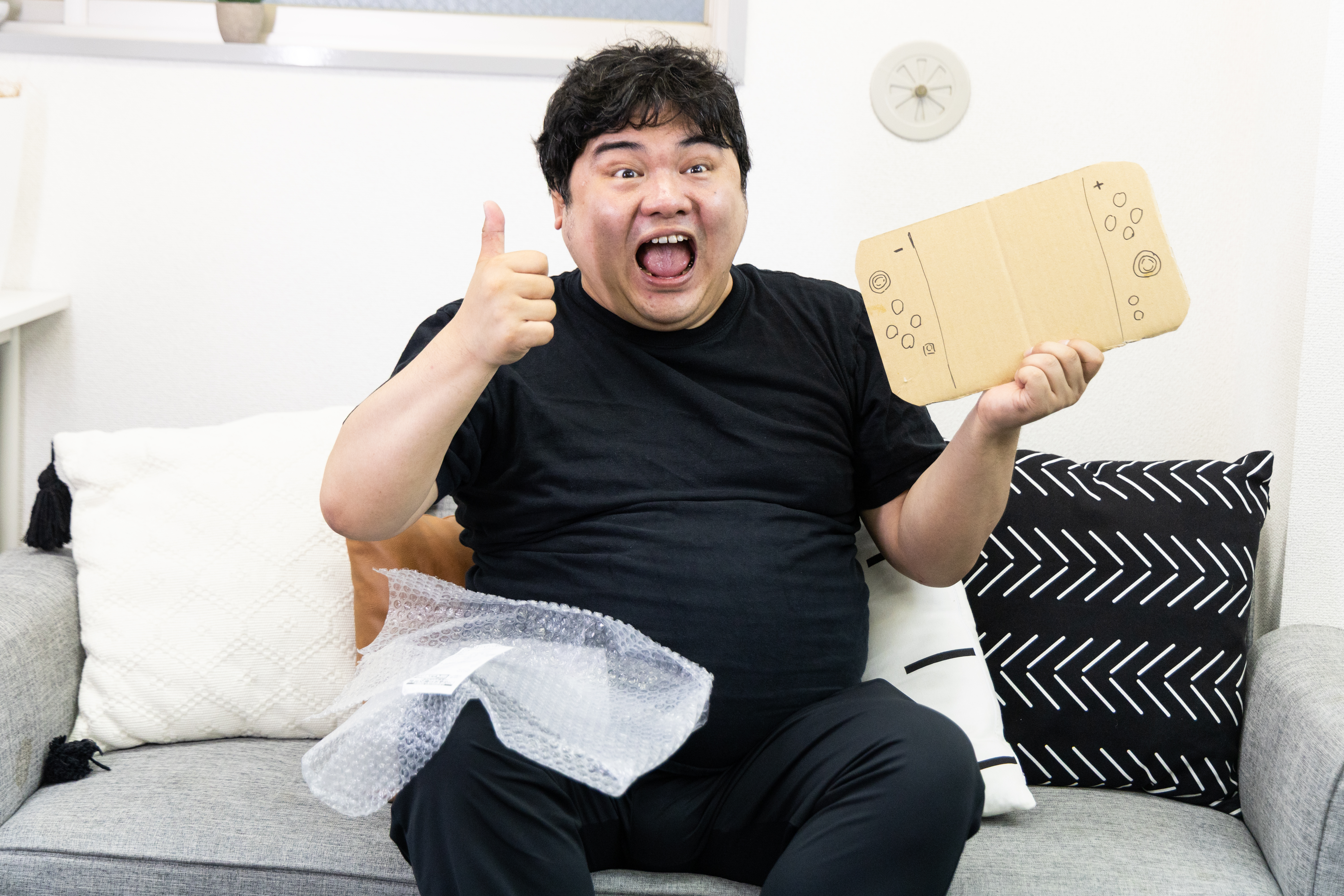 Man in Black T-Shirt Holding Cardboard Game Console, Giving Thumbs Up Free Stock Photo from Japan